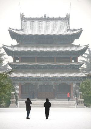 12月7日,市民在太原市迎泽公园观赏雪景。 当日是“大雪”节气,山西省太原市迎来一场小雪,处处银装素裹。 新华社记者燕雁摄