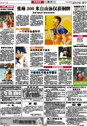 海南日报 体育新闻 015 2009-12-081 2009年12月08日 星期二