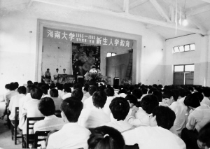 | 海南大学1985年的新生在进行入学教育。