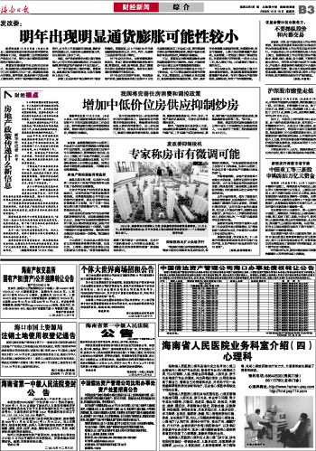 海南日报 财经新闻 011 2009-12-101 2009年12月10日 星期四