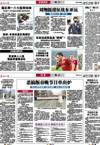 海南日报 体育新闻 015 2009-12-101 2009年12月10日 星期四