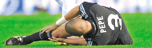 本报讯 跳起争头球,倒地,双手抱住右膝,表情痛苦,被换下场……北京时间14日,在西甲皇马与巴伦西亚上半时比赛结束前,皇马后卫佩佩被替换下场。随后传来更不好的消息,皇马队医在对佩佩进行完初步检查后证实:这名葡萄牙中卫的右膝十字韧带有可能断裂。