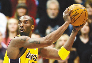 12月13日,洛杉矶湖人队客场以94比102负于犹他爵士队。图为科比在比赛中准备传球。 新华社发