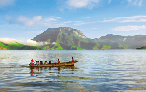泸沽湖中散布着5个全岛、3个半岛、1个海堤连岛,其中,云南宁蒗一侧的黑瓦吾岛、里务比岛和里格岛,是湖中最具观赏和游览价值的三个景点,有“蓬莱三岛”之称。沐浴着薄雾,登上猪槽船,由漂亮的摩梭女领航,我们向里务比岛摇去。