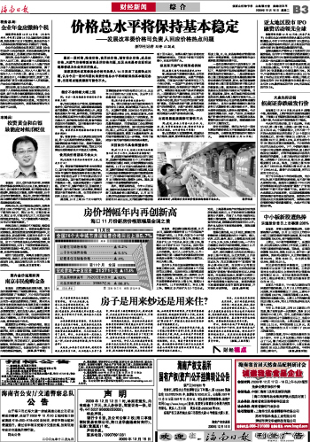 海南日报 财经新闻 011 2009-12-151 2009年12月15日 星期二