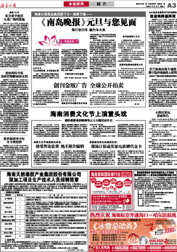 海南日报 本省新闻 003 2009-12-151 2009年12月15日 星期二