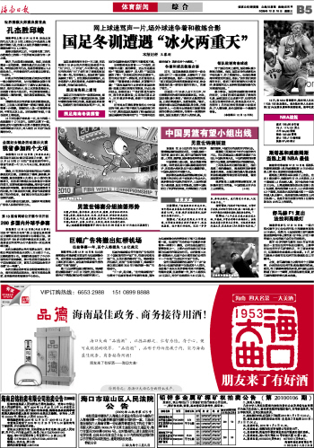 海南日报 体育新闻 013 2009-12-161 2009年12月16日 星期三