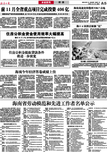 海南日报 本省新闻 005 2009-12-161 2009年12月16日 星期三