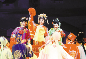 | 12月16日晚,海南省琼剧院庆祝建院50周年琼剧优秀剧目展演的第三场———大型古装琼剧《三拜花堂》在海南戏院上演。图为演出剧照。