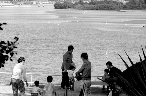 12月15日上午9时许,在三亚市西河东岸亲水平台上,聚集着一群群前来观赏白鹭的游客及市民。白鹭似乎已习惯了与人们友好相处,即使有人走近,白鹭也一点都不惊慌。