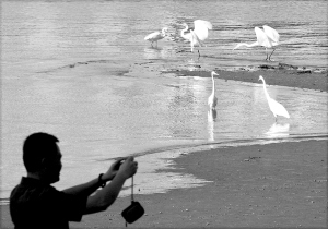②给白鹭留个影。