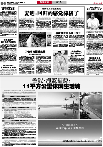 海南日报 体育新闻 014 2009-12-171 2009年12月17日 星期四
