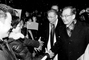 | 12月16日,国务院总理温家宝抵达丹麦首都哥本哈根,出席哥本哈根气候变化会议。这是温家宝在机场受到当地华侨华人和留学生代表的热烈欢迎。 新华社发 |