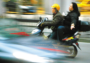 十二月十七日,一辆电动轻便摩托车行驶在上海市福州路上。 新华社记者陈飞摄