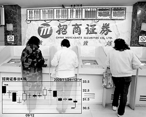 | 日前,招商证券股价跌破了三十一元的发行价,成为今年新股IPO重启以来,首只收盘跌破发行价的股票。 资料照片 |