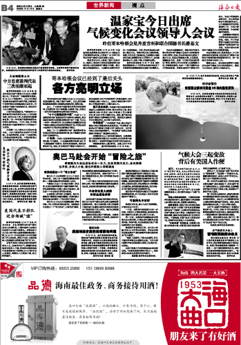海南日报 世界新闻 012 2009-12-181 2009年12月18日 星期五
