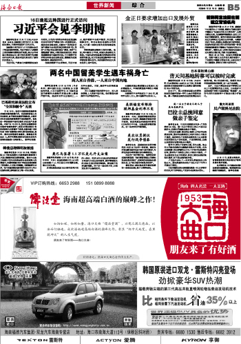 海南日报 世界新闻 013 2009-12-181 2009年12月18日 星期五