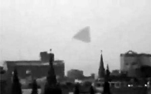 | 金字塔形状的巨型飞碟出现在俄罗斯首都莫斯科克里姆林宫上空。 (电视截图)
