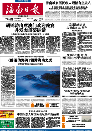海南日报 首版 001 2009-12-201 2009年12月20日 星期日