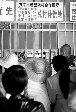 ↓ 12月3日上午,众多参合农民在万宁市和乐镇卫生院窗口办理相关手续。窗口上报销比例一览无余。