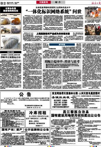 | 海南日报 中国新闻综 合 010 2009-12-211 2009年12月21日 星期一 |