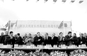 12月20日,在阿尔及利亚布阿拉里季堡省,当地政府官员和中国大使馆官员以及中方工程技术人员出席东西高速公路M1标段通车典礼。当日,由中国中信-中国铁建联合体承建的阿尔及利亚东西高速公路中标段M1标段实现提前通车。东西高速公路是阿尔及利亚建国以来实施的最大现汇工程项目,全长1216公里,既是贯穿阿东西方向的交通大动脉,也是地中海南岸国家重要的战略要道。中国中信-中国铁建联合体于2006年5月中标东西高速公路项目中、西两个标段。 新华社发