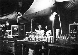 这是一张摄于1980年代的个体户的照片(左一),从照片上看,个体户摊位上摆放的玻璃瓶汽水、装在玻璃罐里的烧饼等,现在街边的小店里基本上已很难见到。但在当时,这些东西可是孩子们口中的美味,上街总少不了缠着大人买上一些解解馋。