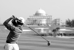 | “洋浦杯”海南金椰子高尔夫球业余公开赛参赛选手在挥杆。本报记者 宋国强 摄 |