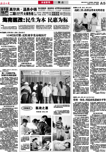 如今,有了新农合,有了县乡村卫生管理一体化,有了乡村卫生室建设等等医改措施在农村的推广普及。海南,率先从医改破题,通过农民均享公共卫生服务的方式,促进了城乡平等。