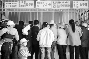 ↑ 12月3日上午,享受“新型农村合作医疗”的农民,在万宁市和乐镇卫生院窗口办理治疗相关手续。