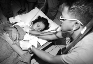 12月24日,在菲律宾首都马尼拉的海岸警卫队办公室,医务人员为一名船只相撞事故中的幸存者检查身体。菲律宾海岸警卫队24日通报,当天凌晨一艘木制客船与一艘渔船在吕宋岛西南海域相撞后沉没,目前已有46人获救,至少27人下落不明。 新华社/路透