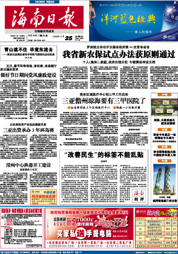 海南日报 头版 001 2009-12-251 2009年12月25日 星期五