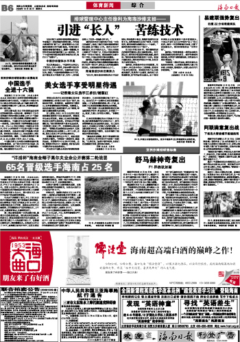 海南日报 体育新闻综 合 014 2009-12-251 2009年12月25日 星期五