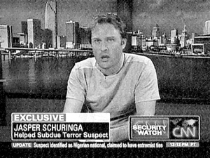嫌疑人供认,自己接受“基地”组织指派,将爆炸物藏在裤裆内带上飞机。根据初步调查,阿卜杜勒—穆塔拉是尼日利亚一名前银行家的儿子,曾在伦敦求学。25日,他从尼日利亚经济首都拉格斯乘荷兰皇家航空公司航班抵达荷兰阿姆斯特丹,然后转机飞往美国底特律都市国际机场。在飞机降落前,他前往卫生间并停留了约20分钟,随后返回座位,借口腹痛将一条毛毯盖在腿上。随即,他所在位置便响起爆炸声并冒烟起火。乘客和机组成员联合将其制伏,扑灭火苗。23岁的荷兰青年贾斯珀·舒林加及时发现并协助空乘人员将其制服,客机最终安全降落,他随后成为美国各界赞颂的英雄。