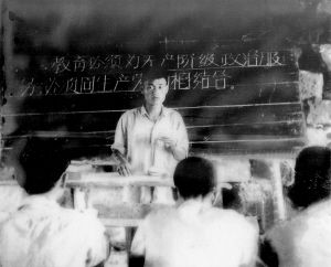 30年前,无论是城市或农村的学校里,都会看见这样一段著名的语录:“我们的教育方针应该使受教育者,在德育、智育、体育几方面都得到发展,成为有社会主义觉悟有文化的劳动者。———毛泽东”。