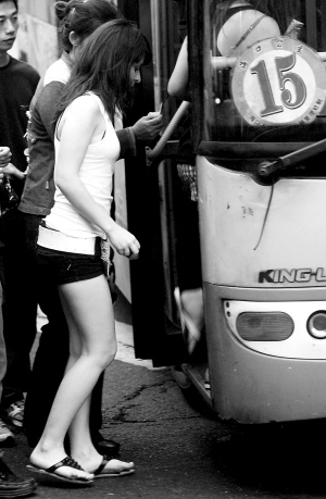 12月27日上午,海口天气热得让人恍若夏天,穿着外套热得冒汗,街上不少市民都穿着短袖出行(见左图)。下午4时以后,气温骤降,一些市民赶紧添衣(见下图)。 本报记者 李英挺 摄