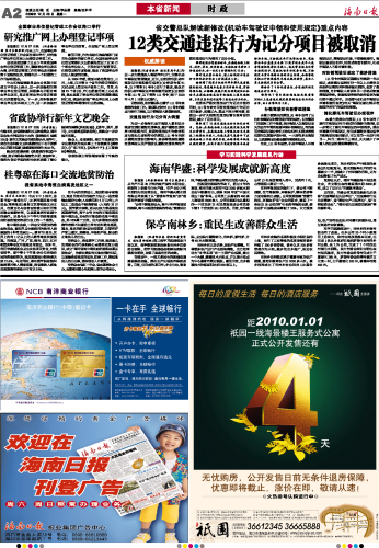 | 海南日报 本省新闻 002 2009-12-281 2009年12月28日 星期一 |