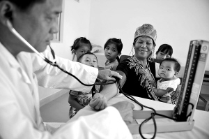 五指山市南圣镇红合村村民在新建的卫生室里检查身体。 本报记者 王凯 摄