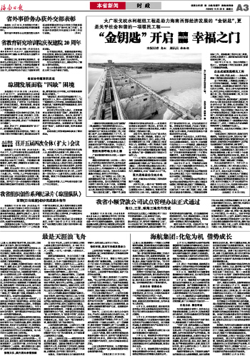 海南日报 时 政 003 2009-12-301 2009年12月30日 星期三