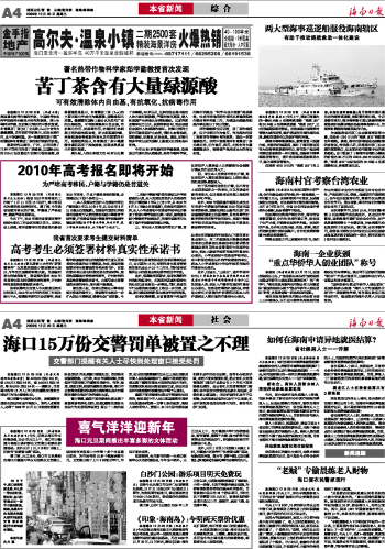 海南日报 本省新闻 004 2009-12-301 2009年12月30日 星期三