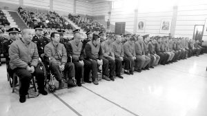 12月30日,吉林省高级人民法院在辽源市中级人民法院对通化市公安局原副局长王禹帆等人涉黑案进行公开宣判,裁定驳回上诉,维持原判。2009年11月,王禹帆等人涉黑案经辽源市中级人民法院审理,认定王禹帆犯有受贿罪,贪污罪,组织、领导黑社会性质组织罪等罪,一审判处其死刑,缓期两年执行,剥夺政治权利终身,并处没收个人全部财产;刘建辉、许淼等29名被告人也分别被判处无期徒刑、有期徒刑等刑罚。宣判后,王禹帆等23名被告人提起上诉。这是王禹帆(前左一)等29名被告人在终审宣判现场。 新华社记者 周立权 摄