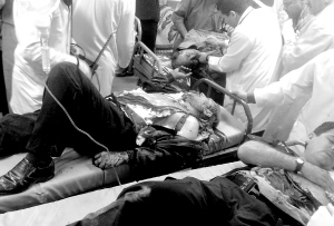 至少23人死亡,57人受伤 12月30日,在伊拉克首都巴格达以西的安巴尔省首府拉马迪,被炸伤的警察在医院接受治疗。伊拉克内政部人士当天说,拉马迪当天发生的连环爆炸已造成至少23人死亡,包括安巴尔省省长阿比德在内的57人受伤。 新华社/路透
