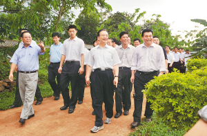 | 4月19日下午,温家宝总理深入海口市琼山区红旗镇本立村了解村民生产、生活情况。 |