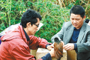 环保爱好者在海口火山口野外放飞4只经过治疗康复的野生褐翅鸦鹃。本报记者 古月 通讯员尹辉 摄
