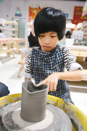 三亚明珠广场陶艺吧吸引小朋友前来一展身手。 本报记者 苏建强 摄