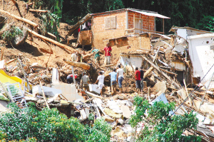 里约热内卢州安格拉—杜斯雷斯市格兰德岛连日大雨,引发山体滑坡。大量泥石杂物涌向山下,淹埋小型豪华宾馆桑凯和数所住宅。