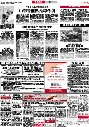 海南日报 体育新闻 006 2010-01-041 2010年01月04日 星期一