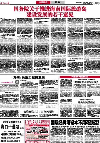 国务院关于推进海南国际旅游岛建设发展的若干意见