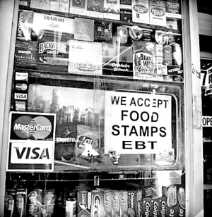 “粮票”(food stamps)是美国政府发给低收入者的食品券,以前是纸券形式,现在多为电子卡系统。政府每月把钱打入卡里,持卡者在商店只能购买面包、蔬菜、肉类等食品,而不能用于烟酒等其他生活用品的消费。只要是符合低收入标准的美国公民,就可以向政府申请食品券。