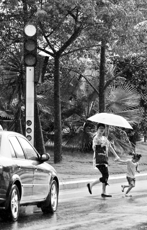 | 海口市龙昆南路,行人从斑马线过马路时经常受到闯红灯车辆的威胁。